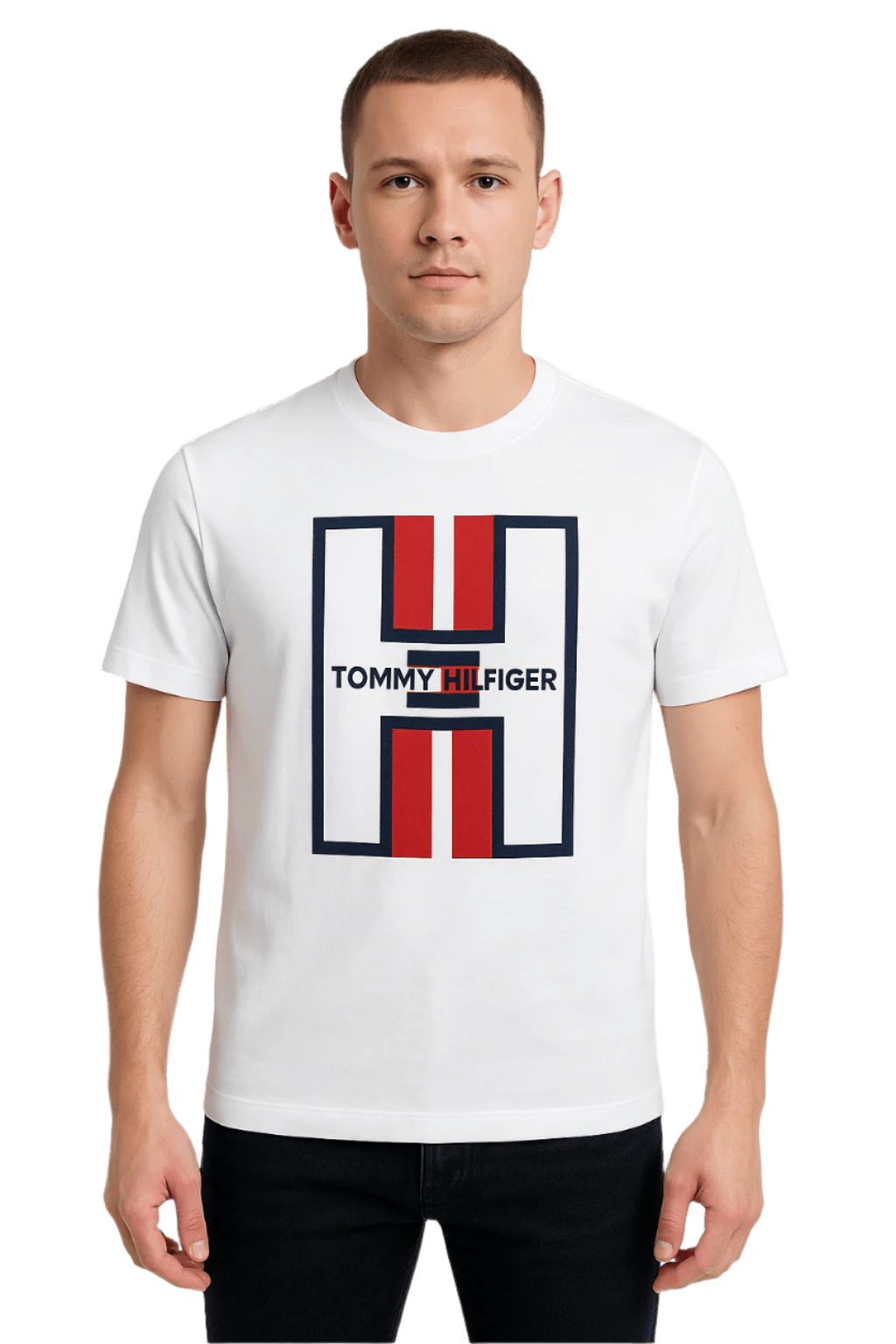 Мъжка тениска Tommy Hilfiger в класически бял цвят, акцентирана с голямо лого отпред в червено, бяло и синьо. Изработена от мека памучна материя, тя съчетава комфорт и модерна визия. Идеален избор за всекидневен стил с отличителен характер.